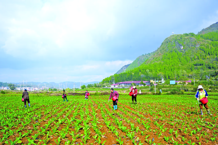 時(shí)下,正是雪里蕻管護(hù)的時(shí)節(jié),在岑鞏縣水尾鎮(zhèn)馬家寨村雪里蕻種植基地里,來(lái)自周邊的村民提著裝滿肥料的水桶,將有機(jī)肥均勻地撒在土壤表面,為幼苗生長(zhǎng)筑牢根基。 -